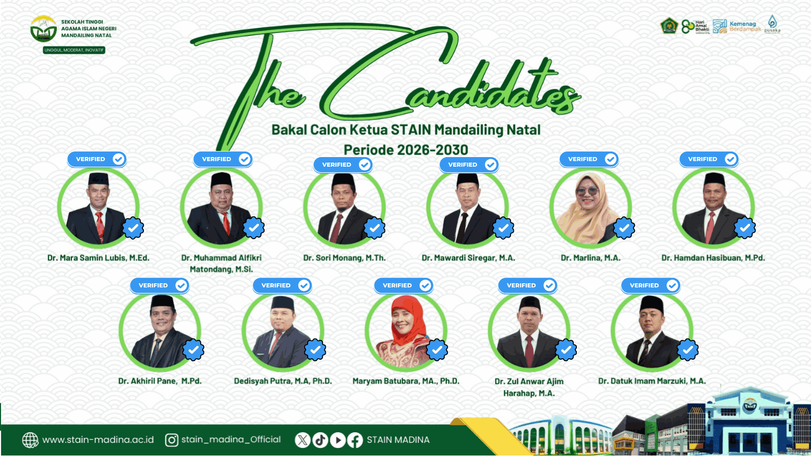 Panyabungan, 4 Februari 2026 — Proses penjaringan calon Ketua Sekolah Tinggi Agama Islam Negeri (STAIN) Mandailing Natal memasuki tahap lanjutan. Setelah melalui proses pemeriksaan administrasi yang komprehensif, panitia penjaringan menetapkan sebelas kandidat yang dinyatakan memenuhi persyaratan berkas dan berhak mengikuti tahapan seleksi berikutnya.